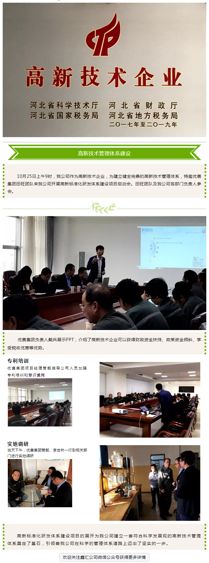 河北鑫匯:高新技術(shù)企業(yè)標(biāo)準(zhǔn)化建設(shè)與管理項(xiàng)目啟動(dòng)