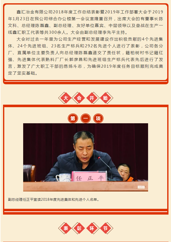 新聞?wù)?鑫匯冶金有限公司2018年度工作總結(jié)表彰暨2019年工作部署大會(huì)隆重召開!